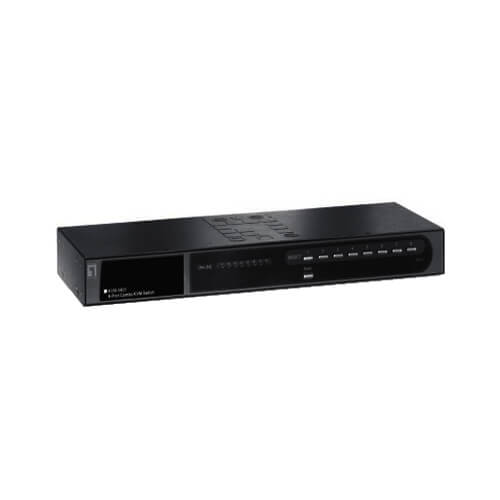 The LevelOne KVM-0831 8-port combo KVM switch enables users to control and manage a server farm or computers connected to the KVM switch with either the local console or remote console port. The KVM-0831 Combo KVM Switch is easy to connect to a PS/2 or USB-enabled keyboard and mouse with a VGA monitor through the local console port. This enables a user to control systems connected to the KVM switch directly.